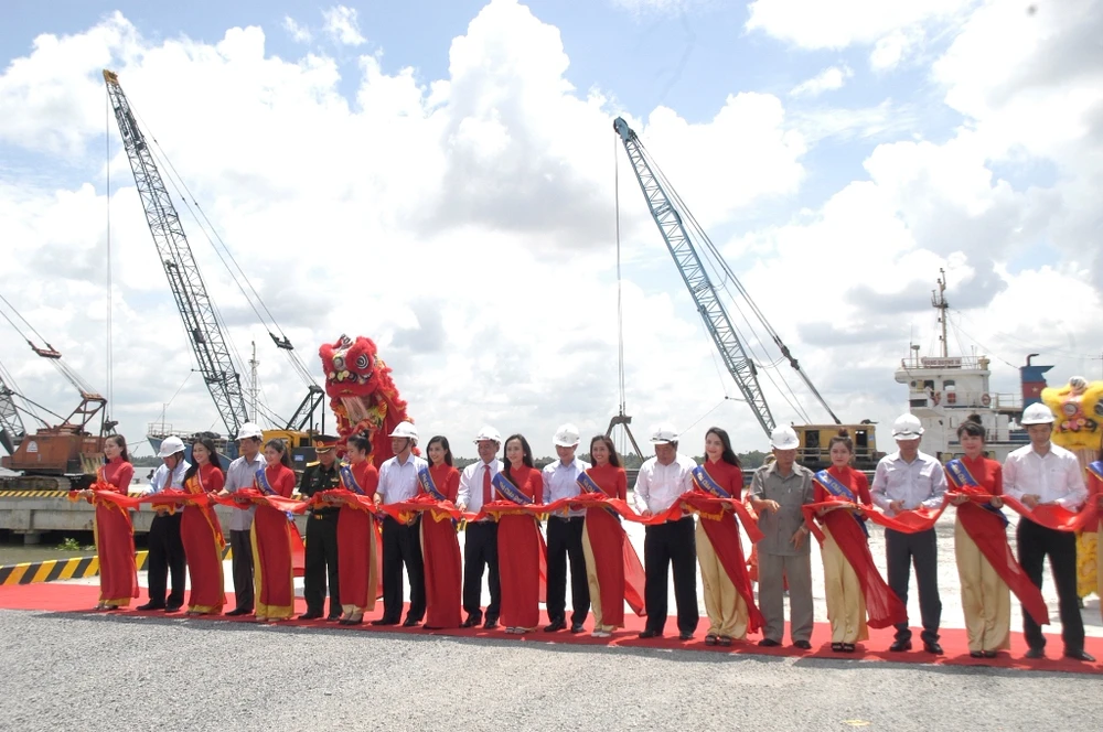 Cắt băng khánh thành cầu cảng số 1 tại Hậu Giang ngày 19-5. Ảnh: CT
