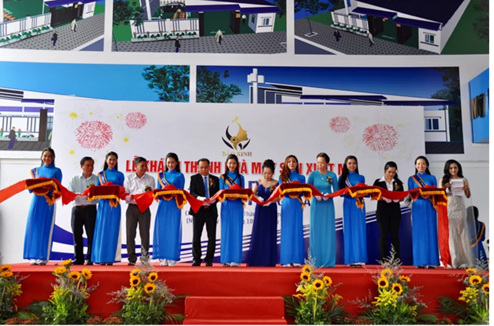 Lãnh đạo công ty và đại diện Sở Y tế tỉnh Hậu Giang cắt băng khánh thành nhà máy.