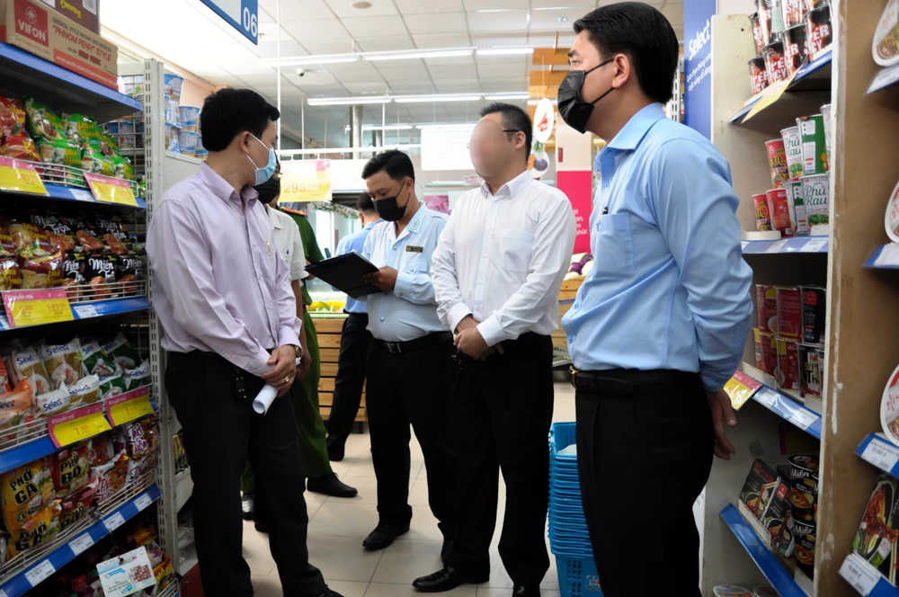 Đoàn công tác của Sở Công thương tỉnh Hậu Giang kiểm tra tình hình cũng ứng hàng hóa thiết yếu trên địa bàn tỉnh. Ảnh: BT