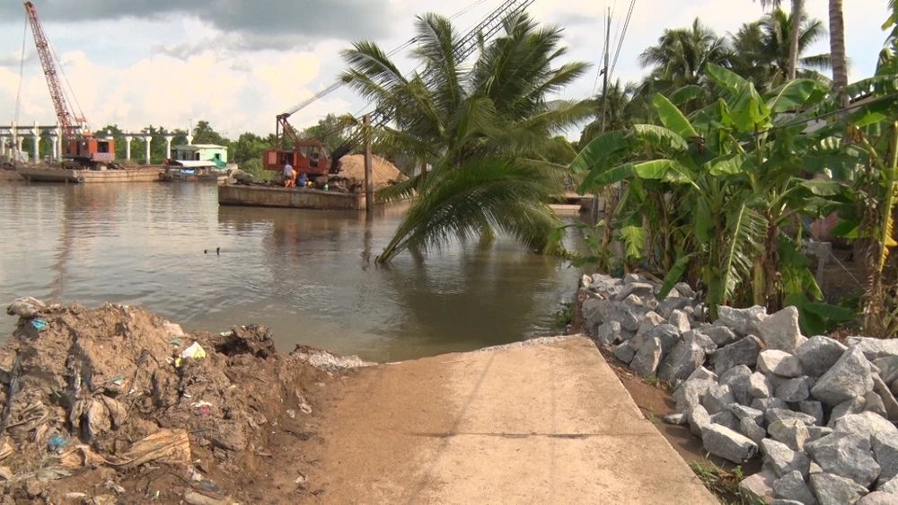 Năm 2016 trên tuyến sông này xảy ra hai điểm sạt lở và đang khắc phục bằng cách làm bờ kè bằng bê tông. Vì vậy về lâu dài, địa phương mong muốn được cấp trên hỗ trợ xây bờ kè, có giải pháp chống sạt lở, bởi sạt lở vẫn luôn rình rập ở tuyến sông này.