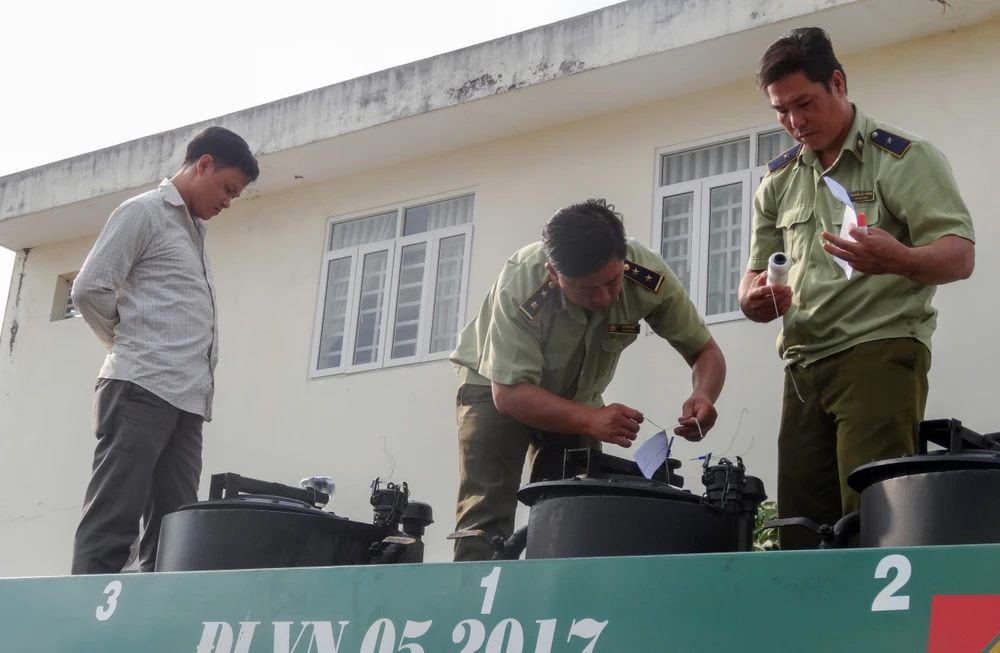 Lực lượng chức năng kiểm tra số xăng vi phạm. Ảnh: Tổng cục QLTT