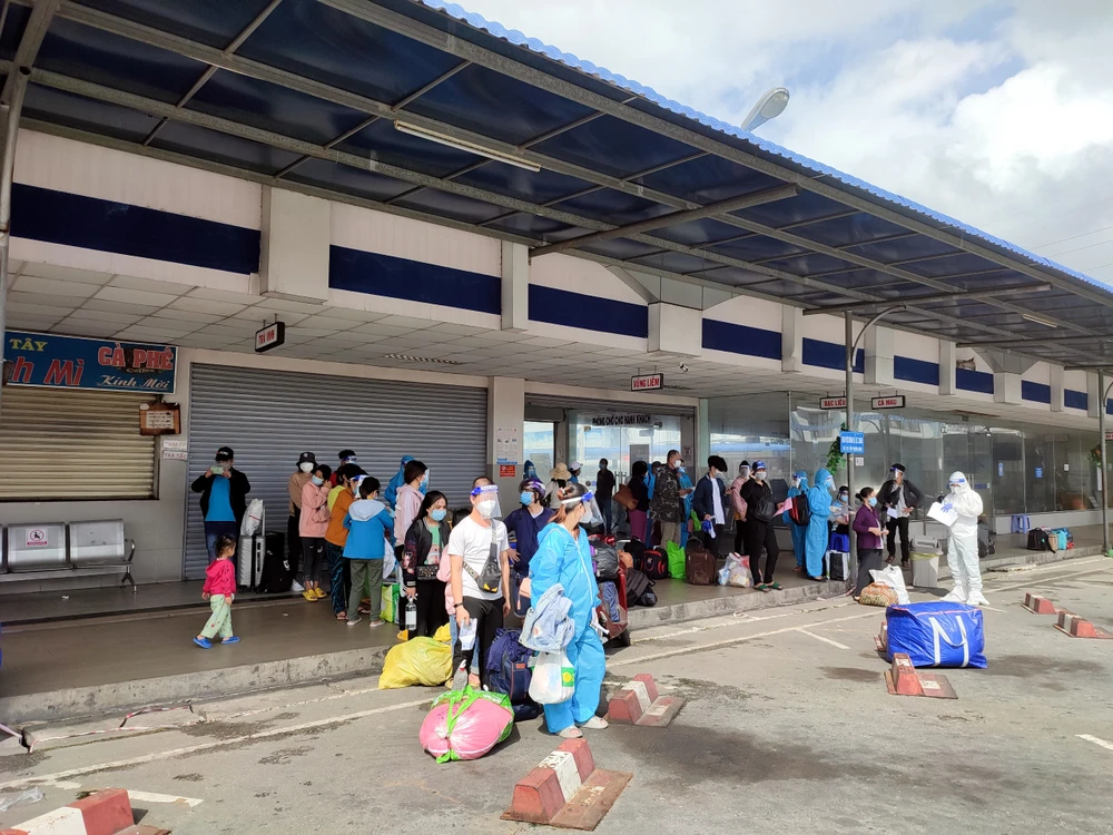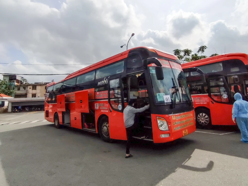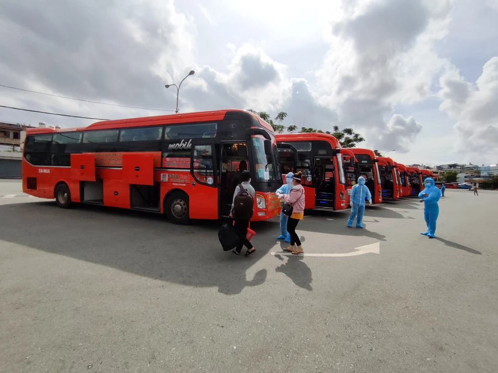 Sau khi đáp ứng các yêu cầu của cơ quan chức năng, các công dân lên xe bắt đầu hành trình về quê.