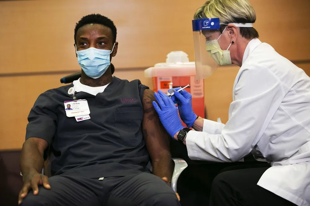 Nhân viên y tế tiêm vaccine ngừa COOVID-19 cho người dân tại Mỹ. Ảnh: WSJ