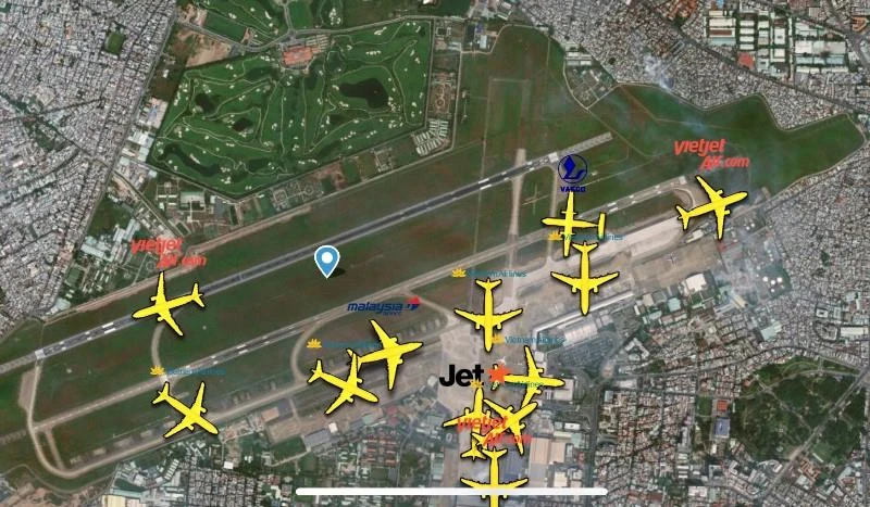 Hình ảnh từ flightradar24 cho thấy số máy bay hạ cánh nhộn nhịp tại sân bay Tân Sơn Nhất. Ảnh: P.ĐIỀN