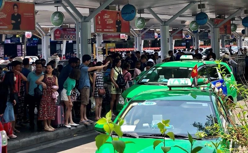 Các hãng taxi, grab trúng đậm sau kì nghỉ lễ do lượng khách đón phương tiện rời khỏi sân bay tăng đột biến. Ảnh: P.ĐIỀN