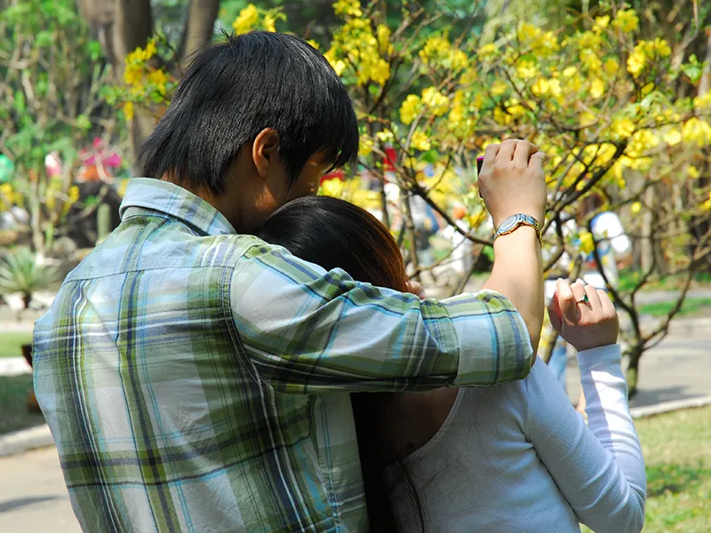 Thể hiện tình cảm nhẹ nhàng nơi công cộng là một cách ứng xử văn minh.Ảnh minh họa: HTD