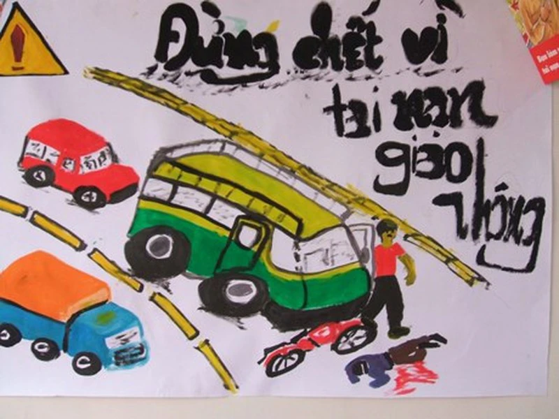 Cú va chạm khiến ông Hiền bị cuốn vào gầm xe ô tô tải, cháu Khoa văng xuống đường, nằm bên phải xe ô tô.