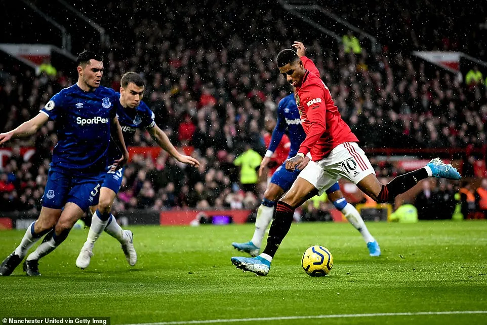 Rashford và đồng đội liên tục thi nhau bắn phá cầu môn Everton.