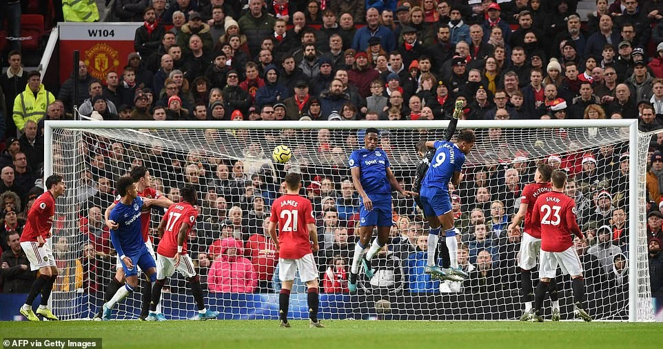 Có cơ hội dẫn trước, Everton quyết giữ thế trận chặt chẽ để kết thúc hiệp một với lợi thế dẫn trước 1-0 trên sân nhà của Man. United.