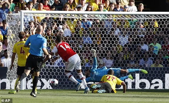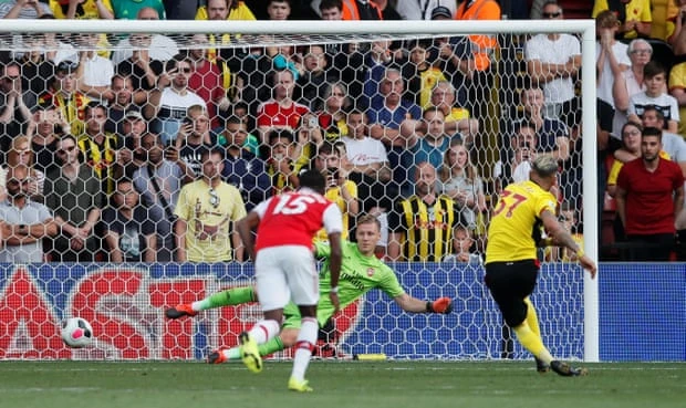 Đội chủ nhà Watford với hai ngôi sao sáng trên hàng công là Tom Cleverley và Gerard Deulofeu mỗi người đều có cơ hội dứt điểm trong 10 phút đầu tiên của trận đấu. Tuy nhiên thủ môn Leno của Arsenal lại là người giành chiến thắng trong cả hai tình huống nguy hiểm trên.