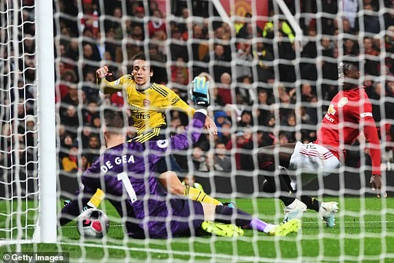 Phút 44 Arsenal gây bất ngờ cho đội chủ nhà bằng pha tình huống tổ chức phản công nhanh, tiền đạo Bakayo Saka dứt điểm đưa bóng vào góc xa nhưng không thể đánh bại được thủ môn De Gea. Sau đó Guendouzi có pha đá bồi nhưng lần này “người nhện” của MU lại tiếp tục giành chiến thắng.