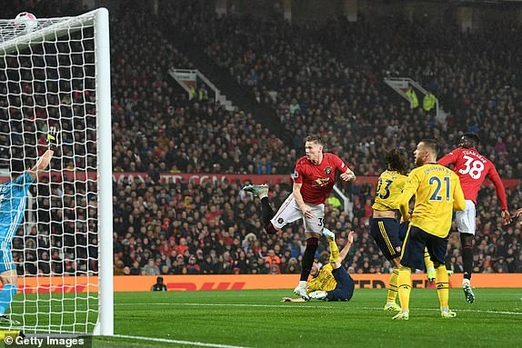 Man. United lập tức tung đòn “hồi mã thương” ngay sau đó và đội nhà đạt được mục tiêu dẫn trước ngay phút cuối hiệp một. Từ đường phản công nhanh đánh thẳng vào khu vực cấm địa của Arsenal, bóng được trả về cho MC Tominay. Tiền vệ người Scotland tự tin dứt điểm ngoài vòng cấm, bóng đi căng găm thẳng vào góc cao khung thành của Arsenal giúp MU vươn lên dẫn 1-0.