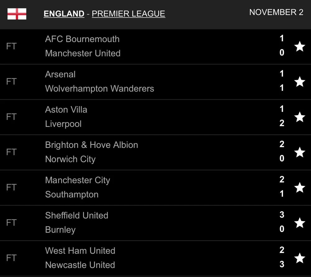 Kết quả vòng 11 Premier League: