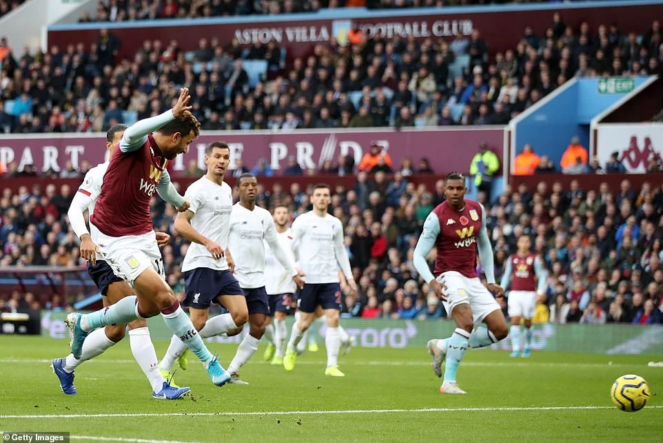 Chủ nhà Aston Villa bất ngờ khi là đội mở điểm trước ở phút 21. Xuất phát từ tình huống đá phạt chếch bên góc trái vòng cấm của Liverpool, tiền đạo Trezeguet thoát xuống, đánh bại thủ môn Alisson. Trong pha bóng này, lỗi thuộc về các hậu vệ của Liverpool khi không theo kèm Trezeguet.