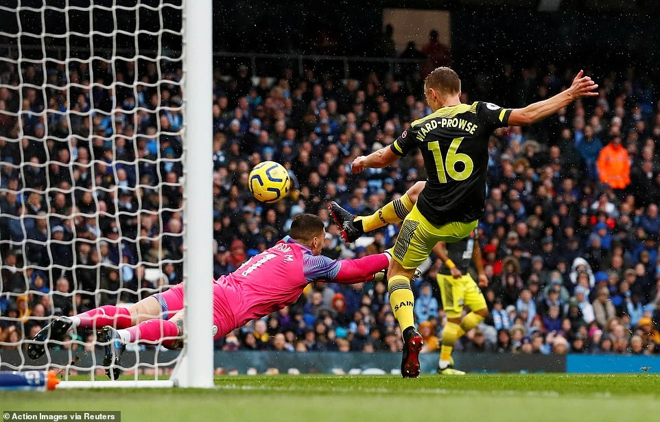 Ở trận đấu cùng giờ, Man. City cũng phải chật vật mói có được 3 điểm trên sân nhà Etihad khi tiếp đón Southampton. Đội khách Southampton bất ngờ có bàn thắng vươn lên dẫn trước từ pha đệm bóng cận thành của Ward-Prowse. Tương tự như Liverpool, Man. City kết thúc hiệp một mà không thể có được bàn gỡ.