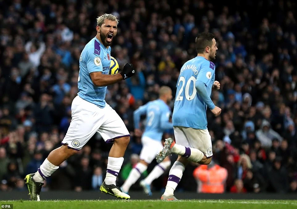 Aguero gỡ hòa cho Man. City phút 70 sau đường căng ngang của Kyle Walker.