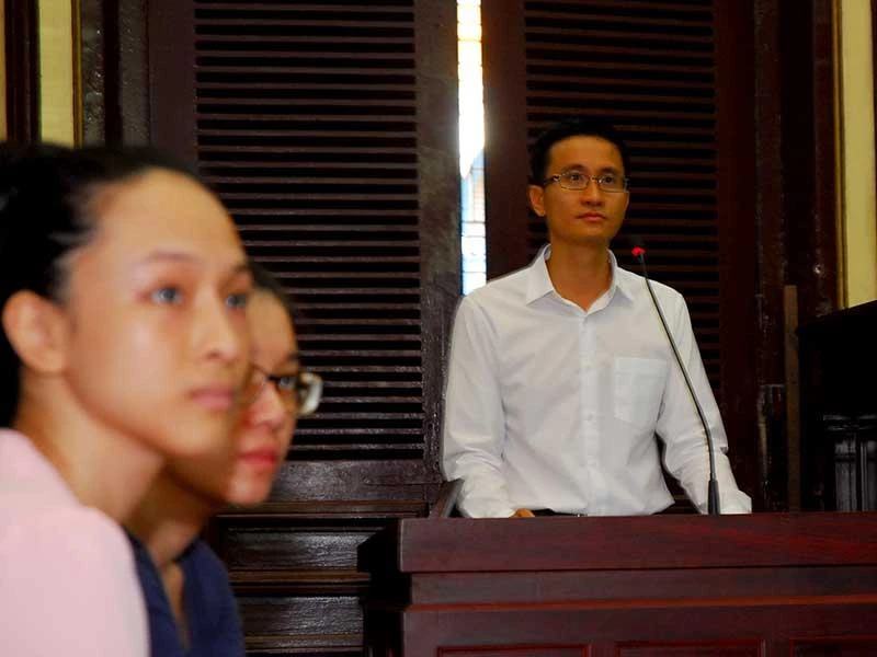 Phương Nga, Thùy Dung và ông Cao Toàn Mỹ tại phiên tòa hồi tháng 6-2017. Ảnh: HTD