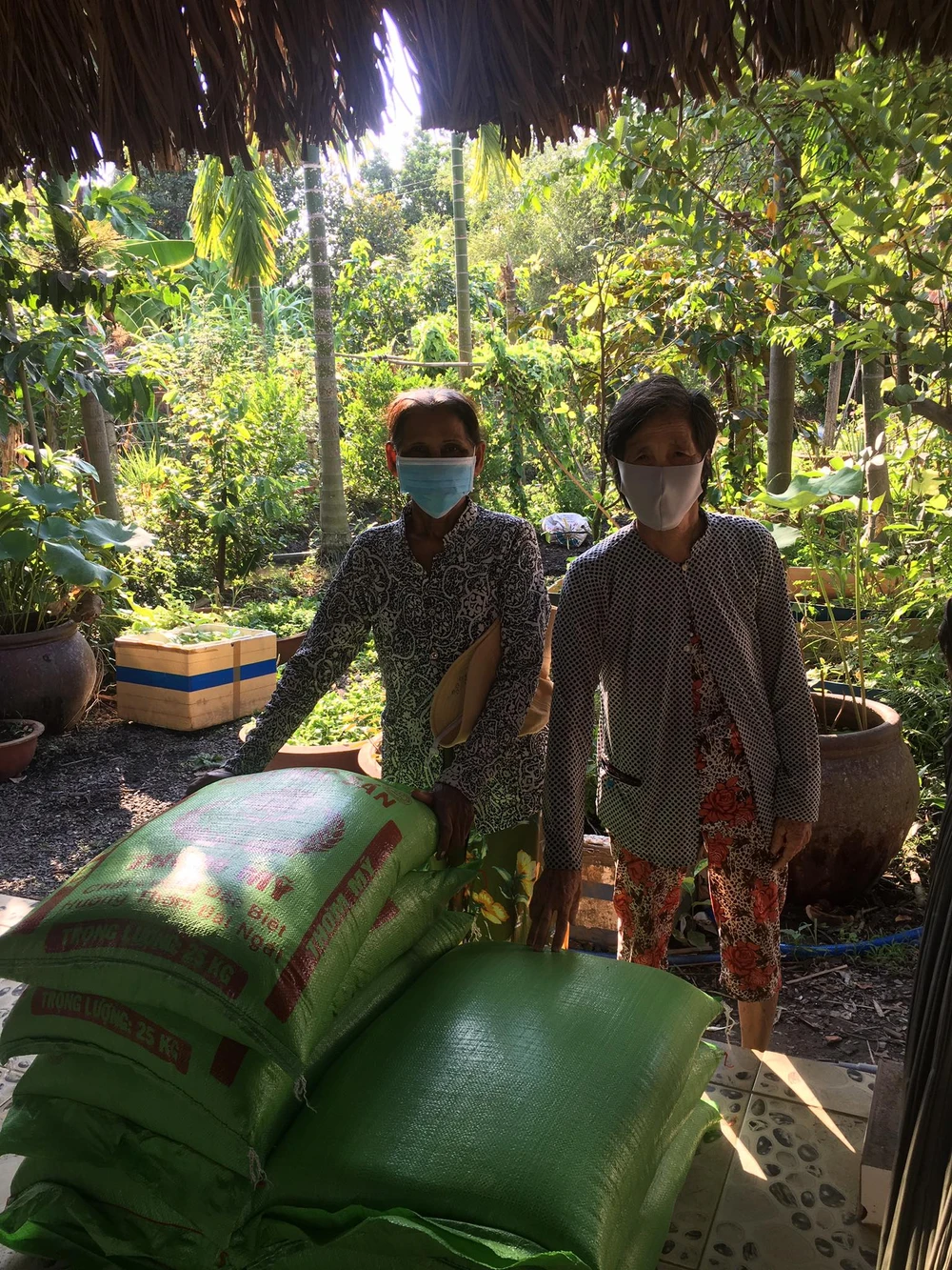 Tôi quyết định mua 400 kg gạo để biếu. Trong khu phố có 12 hộ nghèo và 10 hộ ít khó khăn hơn. Hộ nghèo thì nhận loại 25 kg, các hộ còn lại nhận 10 kg.