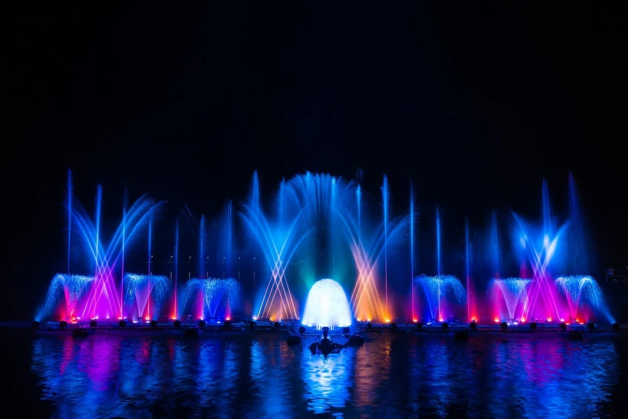 Thưởng thức màn trình diễn đặc sắc của âm thanh và ánh sáng trên mặt hồ trung tâm