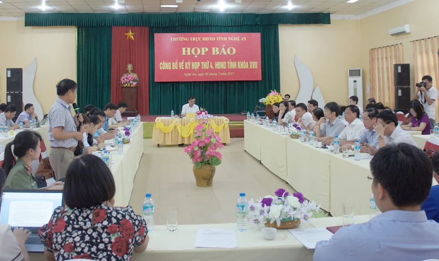 Tại buổi họp báo, đại diện một số cơ quan báo chí đã nêu một số vấn đề để đề nghị HĐND chất vấn, giám sát như tình trạng vay-mượn tiêu chí để đạt danh hiệu nông thôn mới; vai trò của hợp tác xã chưa phát huy, đang xảy ra tình trạng sản xuất “mạnh ai nấy làm”; đầu ra cho nông sản chưa ổn định. Đề nghị làm rõ tình trạng bội chi bảo hiểm y tế; nước sạch cho các xã ngoại thành TP Vinh; cho xây dựng quá nhiều chung cư nội thành TP Vinh; công tác đền bù, giải phóng mặt bằng các dự án thủy điện Khe Bố, Hủa Na, bản Mồng; công tác bảo vệ môi trường trong khai thác khoáng sản; việc bán "đất vàng", đất "kim cương" không qua đấu giá...