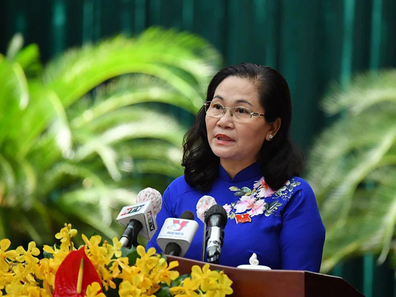 Chủ tịch HĐND TP.HCM Nguyễn Thị Lệ phát biểu bế mạc kỳ họp chiều 9-12. Ảnh: HOÀNG GIANG