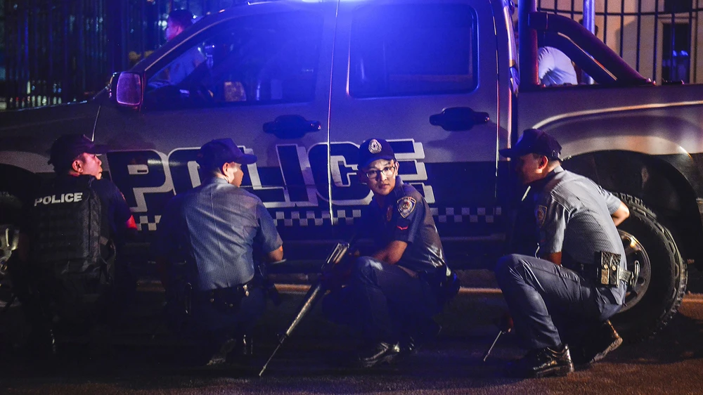 Cảnh sát vũ trang Philippines bao vây bên ngoài Resorts World Manila thời điểm Javier tấn công và phóng hỏa tại sòng bạc. Ảnh: EPA