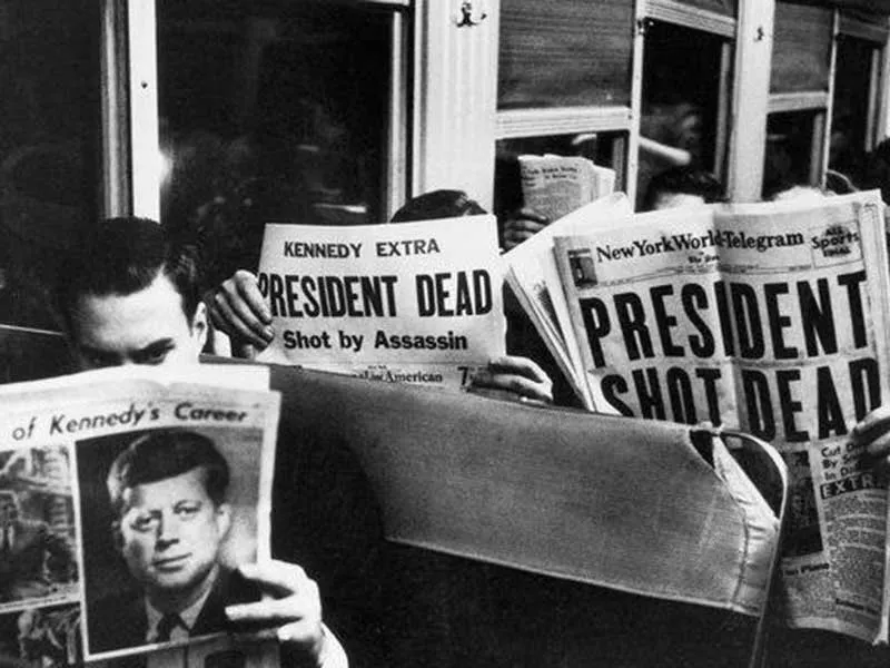 Người dân đọc báo về cái chết của Tổng thống Kennedy. Ảnh: AP