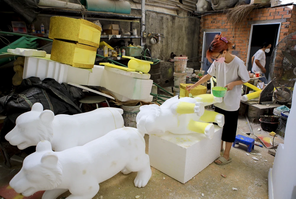 Gần 2 tháng nay, Xưởng sản xuất của nghệ nhân Văn Tòng (quận 12, TP.HCM) tất bật hoàn thiện những mô hình linh vật, các tiểu cảnh để chuẩn bị ráp đường hoa Tết Nhâm Dần 2022.