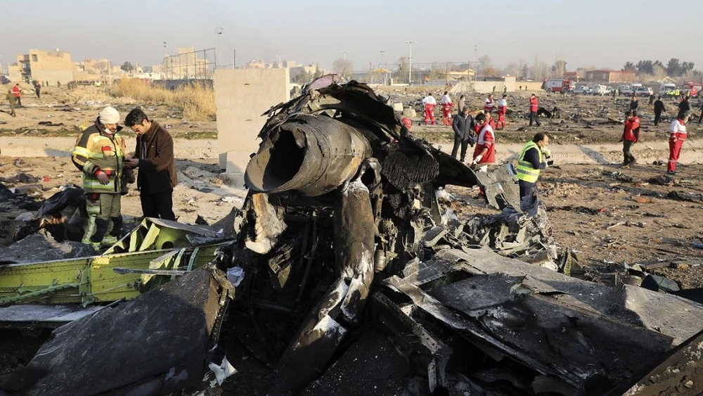 Hiện trường vụ tai nạn máy bay của Ukraine khiến 167 hành khách thiệt mạng hôm 8-1 ở Tehran. Ảnh: ANADOLU