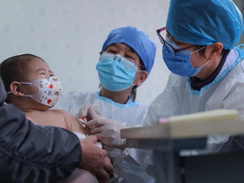 Trẻ em tiêm vaccine ngừa sởi tại một trung tâm y tế ở thủ đô Bắc Kinh,