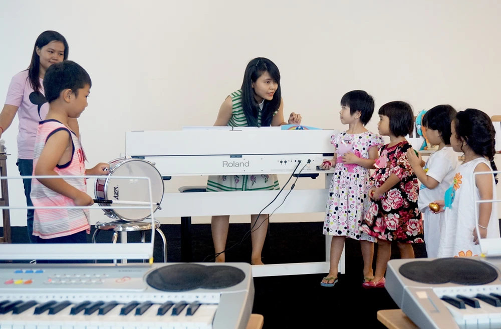 Lớp học nhạc thu hút rất nhiều bé tham gia.