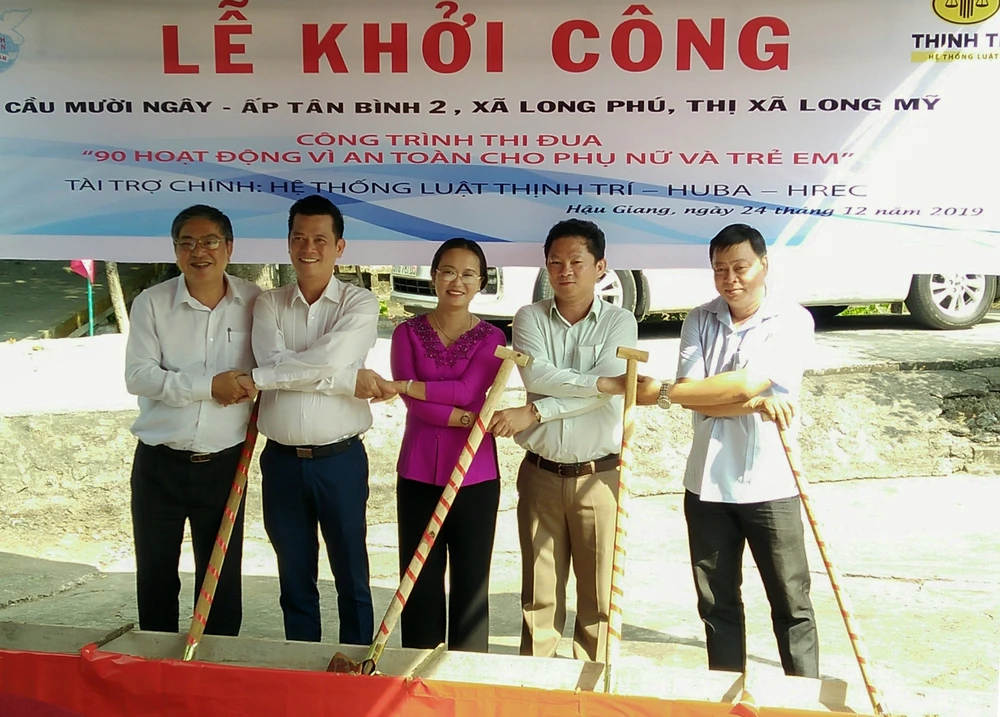 Sáng 24-12, Hội Liên hiệp phụ nữ (LHPN) tỉnh Hậu Giang phối hợp với UBND thị xã Long Mỹ tổ chức khởi công xây dựng cầu Mười Ngây ở ấp Tân Bình 2 (xã Long Phú).