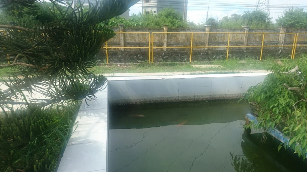Nước thải sau khi xử lý được chuyển vào hồ cá, sau đó mới chảy ra kênh Đa Cô (ảnh chụp sáng 3-10 tại Nhà máy Coca-Cola Đà Nẵng).