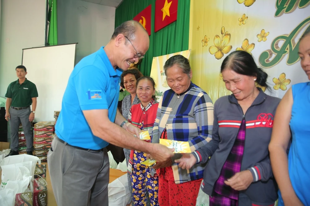 Mỗi phần quà gồm tiền mặt, nhu yếu phẩm, tổng giá trị quà tặng gần 85 triệu đồng. Đây là hoạt động trong chương trình Mùa Xuân ấm áp- hỗ trợ cộng đồng thường niên của HEINEKEN Việt Nam cùng các nhãn hiệu Tiger, Larue, Bivina.