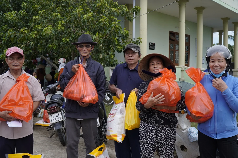 Người dân nhận quà cứu trợ từ Bia Việt