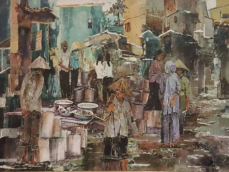 Trước đó, khi ông bị bệnh, bác sĩ khuyên ông ngưng vẽ, ngưng tiếp xúc hóa chất. Vậy là ông bỏ vẽ tranh, chuyển qua sáng tác bằng cách xé giấy dán. Những bức tranh kết từ những mảnh giấy giống như những mảnh đời tách ra từ đâu đó rồi được ghép chung với nhau, với một con hẻm. Ban đầu nó sẽ lộn xộn nhưng rồi sẽ thành một bức tranh đời.