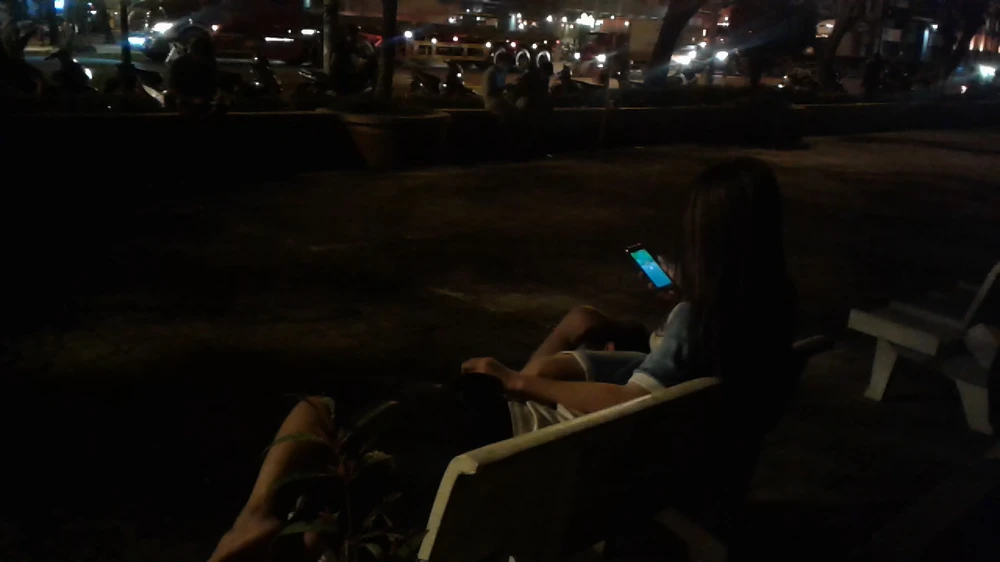 Cô gái mải mê chơi Pokémon Go, còn chàng trai đã ngủ từ bao giờ. Ảnh: NGUYỄN TRÀ