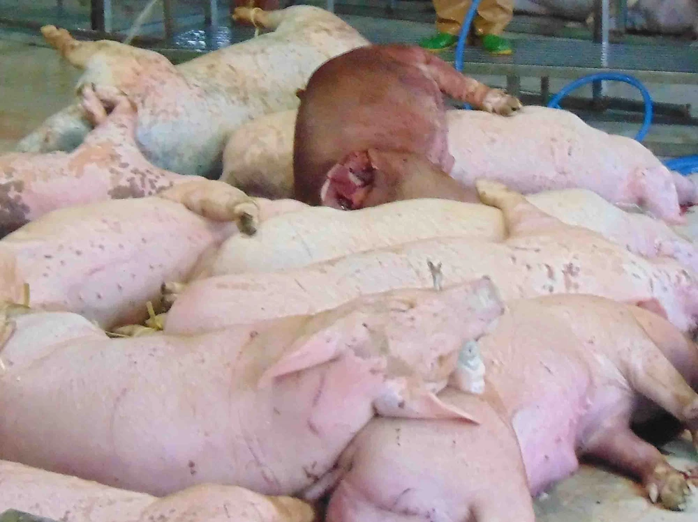 Trước đó, 90 con heo nói trên được đưa vào Trung tâm Giết mổ gia súc Bình Tân (TP.HCM) để chuẩn bị giết mổ.