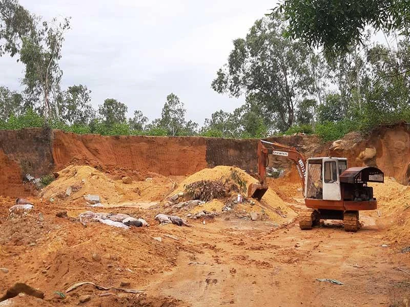 Huy động xe múc đào hố tiêu hủy heo mắc bệnh dịch tả heo châu Phi. Ảnh: THANH NHẬT