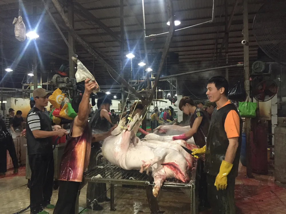 Thương lái nại lí do tăng giá từ chủ ô chảo ở lò giết mổ đề mua giá heo thấp từ người chăn nuôi