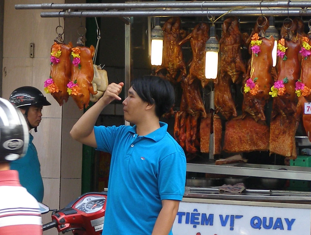 Heo quay được tiêu thụ nhiều trong ngày mùng sáu tết vì nhiều doanh nghiệp sản xuất và cửa hàng kinh doanh khai trương. Ảnh: Trần Ngọc