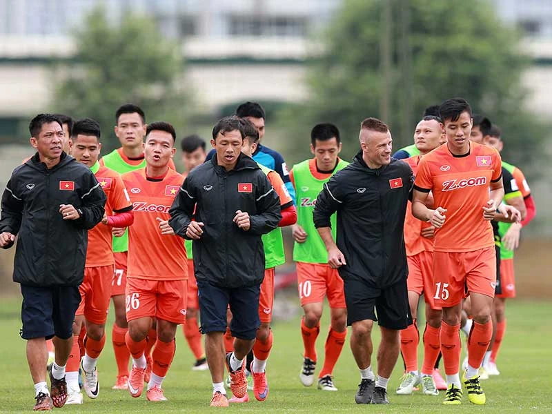 Toàn đội đang chuẩn bị trước hai trận giao hữu cuối. Ảnh: XUÂN HUY