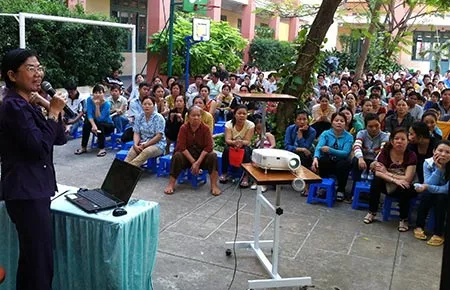 Một buổi họp dân tuyên truyền đưa trẻ đến trường của Phòng GD&ĐT quận Tân Phú. (Ảnh do nhân vật cung cấp)