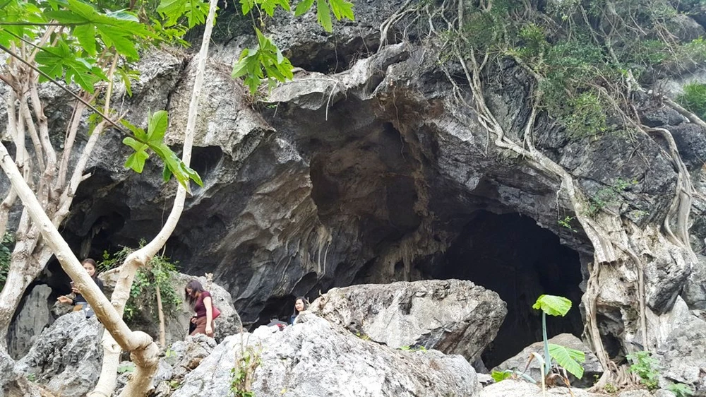 Nhiều du khách tò mò vào thăm hang đá.