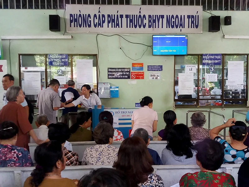 Bệnh nhân chờ cấp thuốc BHYT tại BV Nguyễn Tri Phương, TP.HCM. Ảnh: HTD