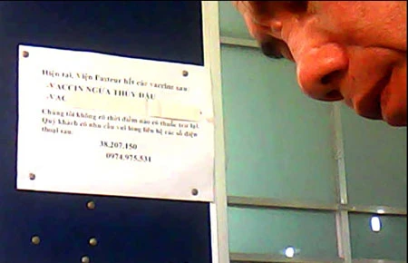 Một phụ huynh lo lắng khi đọc thông tin Viện Pasteur TP.HCM hết vaccine thủy đậu. Ảnh: TRẦN NGỌC