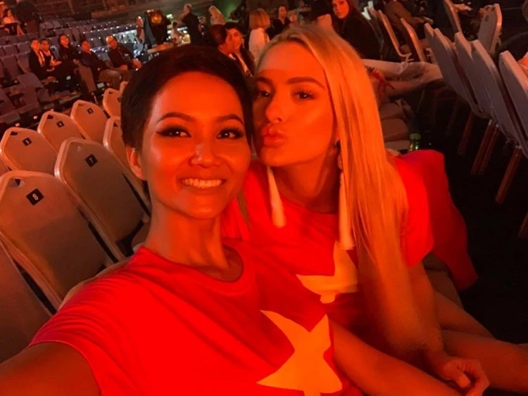 Dù tất bật chuẩn bị cho buổi thi chung kết nhưng trước trận chung kết AFF Cup ngày 15-12, H'Hen và hoa hậu Mỹ đã mặc áo in cờ Việt Nam gửi lời chúc đội tuyển chiến thắng. Hành động này đã khiến một lượng lớn fan của bóng đá yêu quý cô nồng nhiệt.
