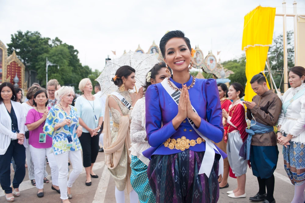 Ngày 8-10, trong một hoạt động khác, cô rất xinh đẹp trong trang phục truyền thống Thái Lan. Nhiều trang đánh giá nhan sắc của H'Hen sẽ lọt top 3.
