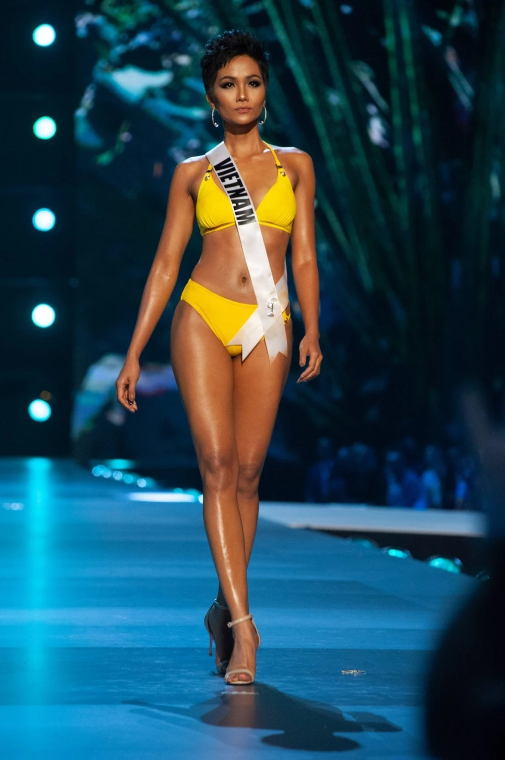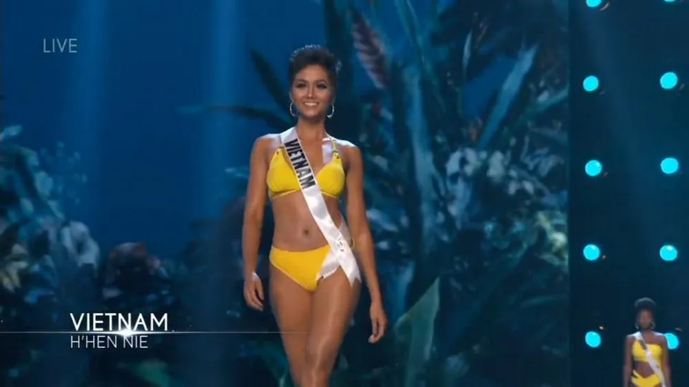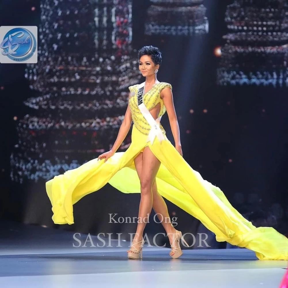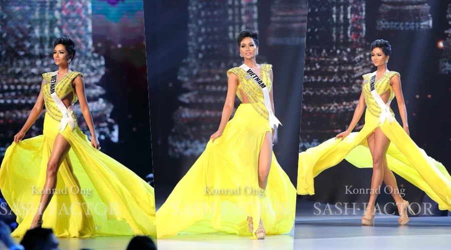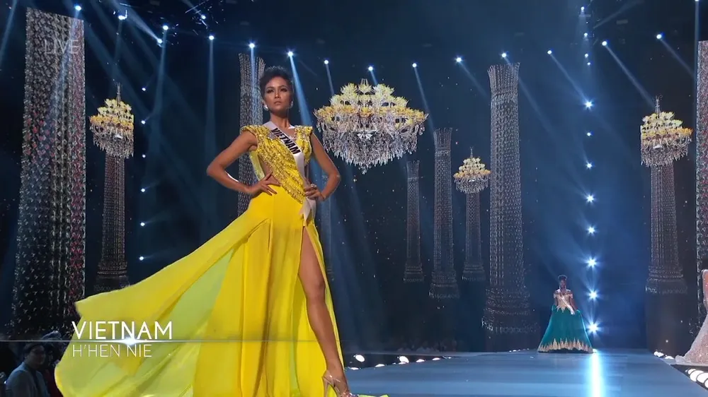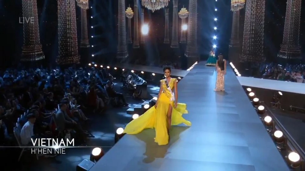 Hình ảnh H'Hen Niên đang tạo sóng tại Miss Universe:
