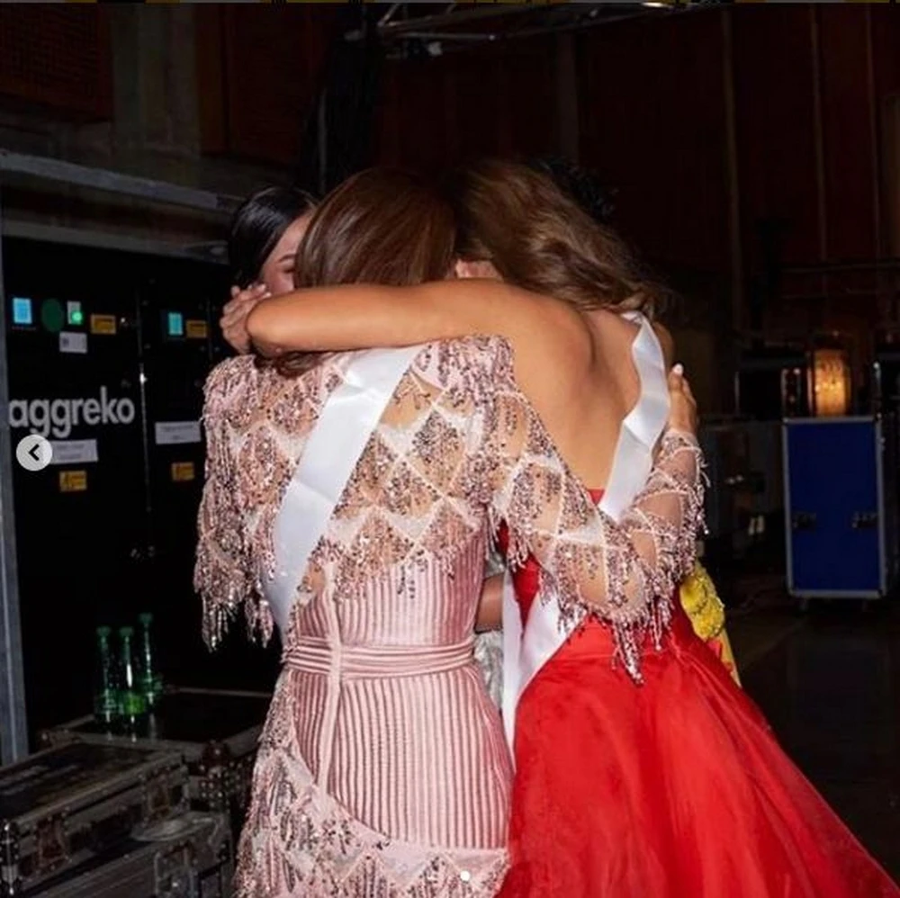 Các hoa hậu ôm nhau thân thiết nhưng công chúng thì không quên thái độ không hay của hoa hậu Mỹ.